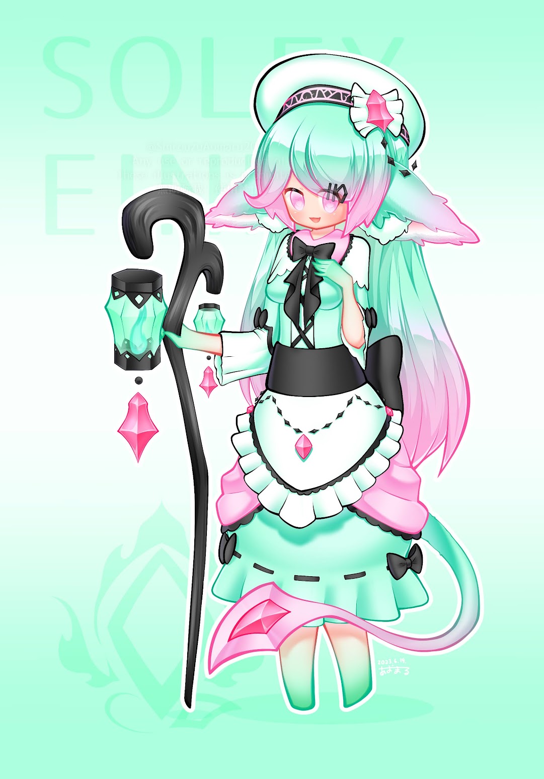 【一枚絵イメージ】白緑の冥神『ソルフィ・アインネル』 一枚絵イメージ X Mastodon Bluesky Facebook LINE コピー 2023.06.132024.02.10 当創作『幻想狼神伝説』のヒロインの『狼神インディ様』から溢れた魔力の欠片が長い時を経て人型となった姿。 死と生の神で、当創作の舞台である『ハキアマーダー界』の人口を管理している冥神です。 👇この子の詳細 ソルフィ とはソルフィとは、冥界エヴィヒアル・ラーディエスの主。あおまるキャラのこと。