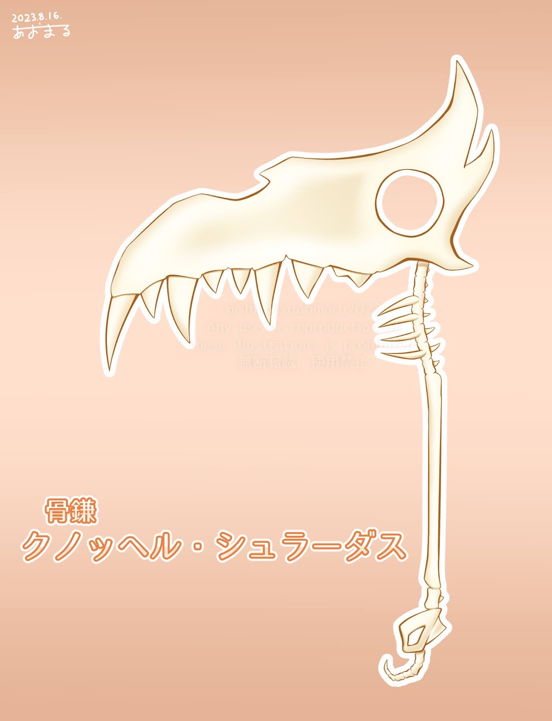 【一枚絵イメージ】骨鎌『クノッヘル』擬人化 一枚絵イメージ X Mastodon Bluesky Facebook LINE コピー 2024.01.07 DIAGRAM’Sのライアンに続くギザ歯キャラ。 だらしなさすぎて、ありえんくらい胸元ガッバァってなってる。笑 👇この鎌の詳細 クノッヘル とはクノッヘルとは、原始都市ベスティアルのボス『ザンナ』の鎌のこと。
