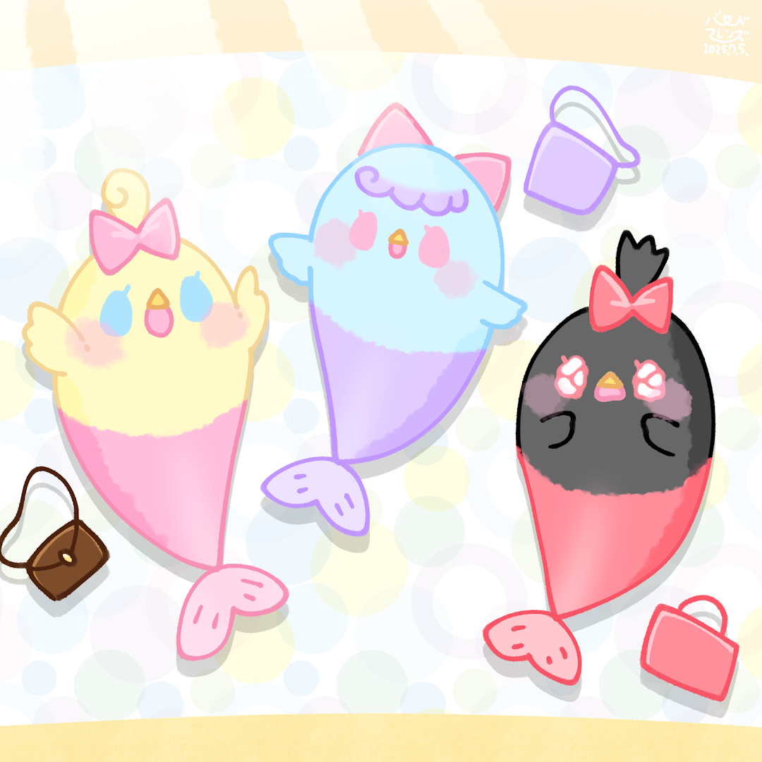 夏を砂浜でエンジョイしていたら、突然人魚になっちゃった!突然起きた夢のような出来事に3羽もビックリ。これ、スーツじゃなくて…本物だ!脚としっぽの感覚が無くなって、かわりにヒレが生えているではないか!これなら平気で海に行けるんとちゃいますか!...